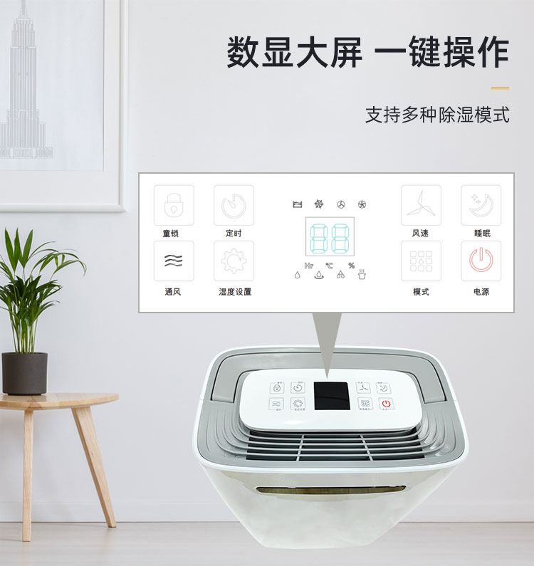 2. 濕度控制功能: 配備濕度控制功能,允許用戶設(shè)置目標(biāo)濕度水平。一旦環(huán)境濕度超過(guò)設(shè)定值,除濕機(jī)會(huì)自動(dòng)啟動(dòng)工作。