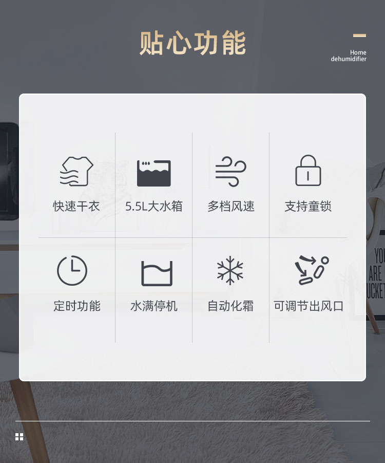適用場(chǎng)景:地下室、臥室、客廳、廚房,家用除濕,陰雨潮濕天氣可以放在晾衣架下面干衣(室內(nèi)密封環(huán)境)。